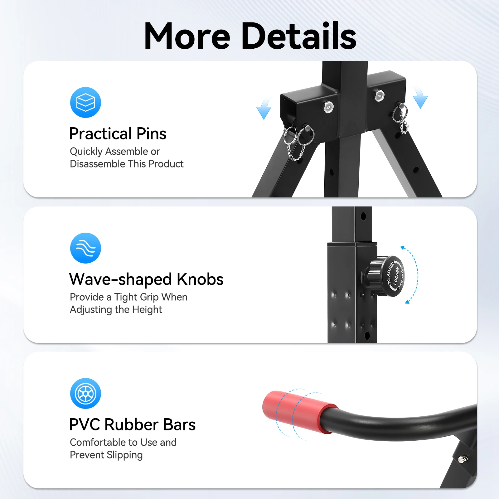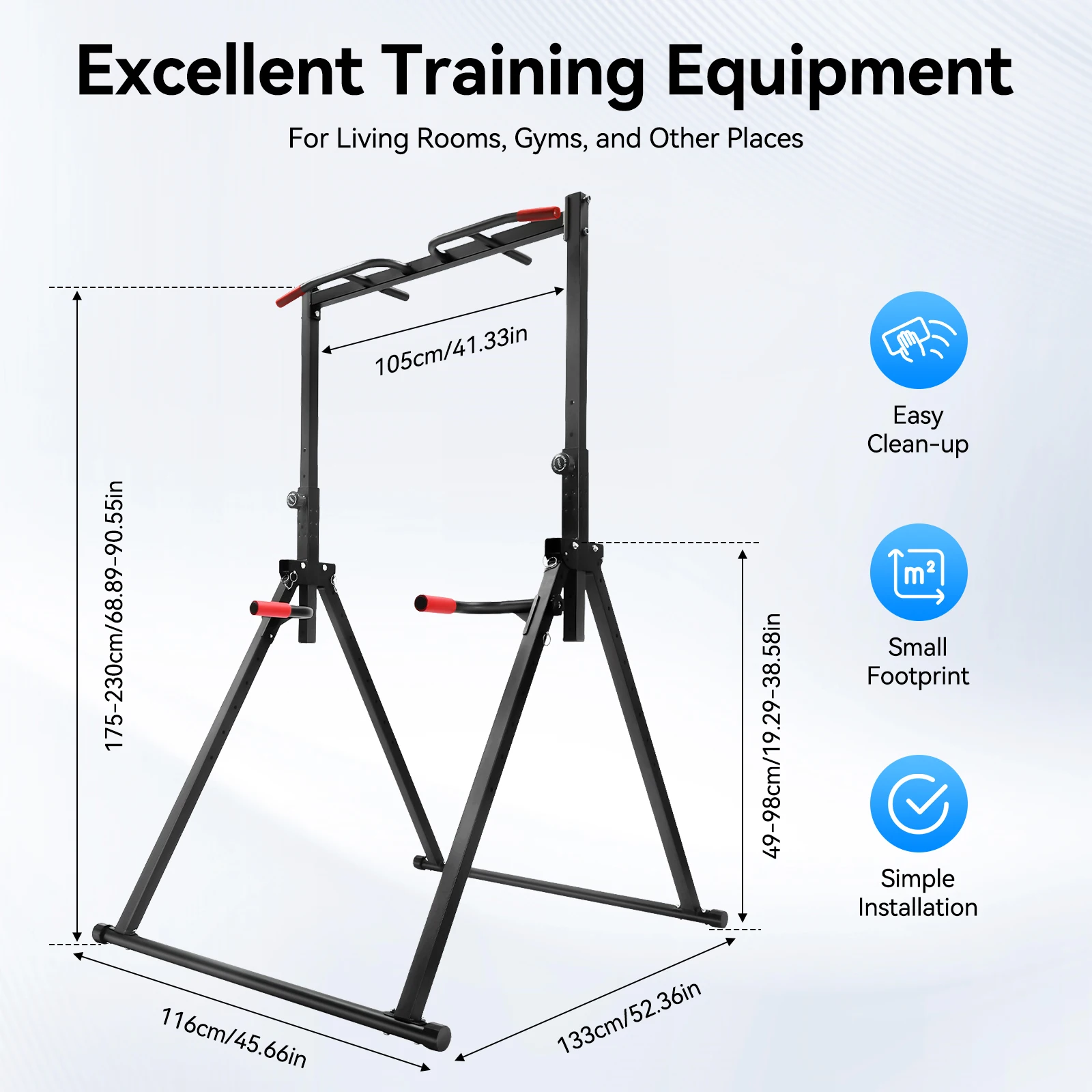 Comfortable Bars: The parallel bars and the horizontal bar are wrapped with PVC rubber, which is comfortable to use and anti-slip.